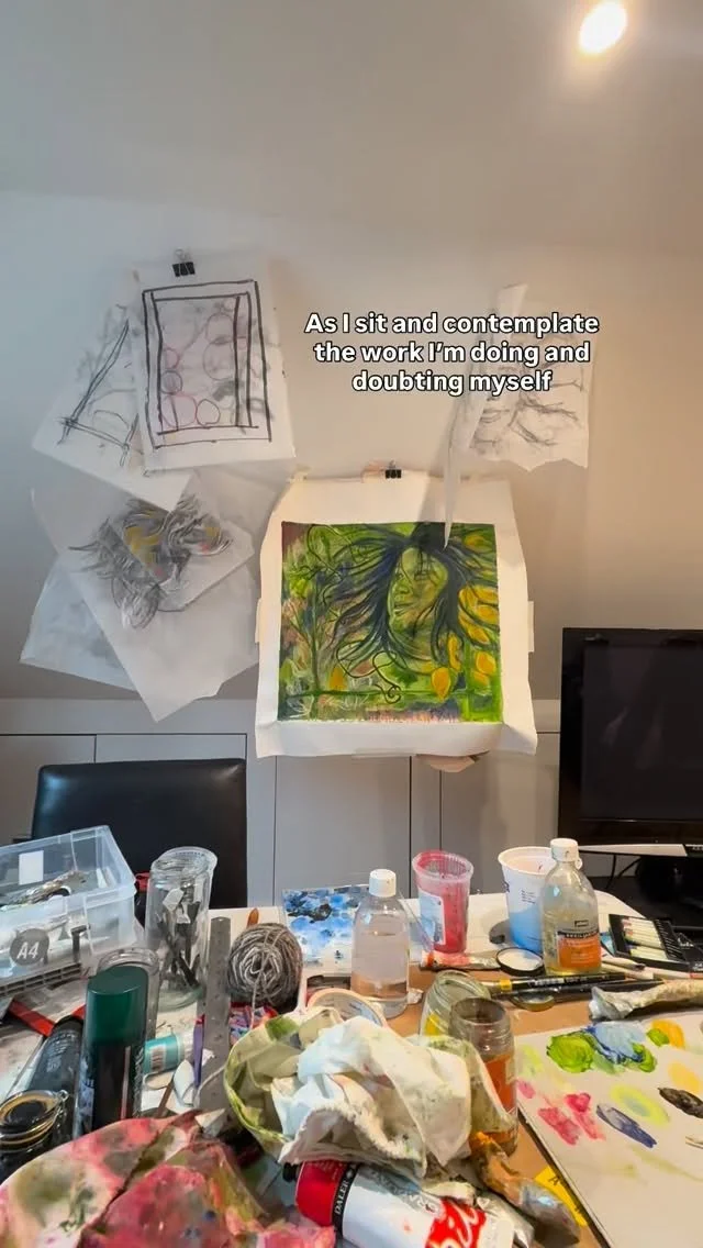Discovering a passion for art later in life after her children had grown up, she found a new lease of life in adopting an open and curious attitude to creativity. She started working with textiles, print, found objects, painting with inks, home-made pigments, acrylics and oils and explored 3D work with natural object, wire and clay. She is equally interested in how moving image and sound works can convey deep and resonant experiences.